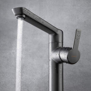 Umywalkowa bateria z kolekcji autorskiej Arnika Titanium w przyjemnym dla oka, intrygującym, a jednocześnie eleganckim i matowym odcieniu grafitowej stali, który odpowiada współczesnym trendom kolorów ziemi, łączy kolorystykę z subtelnymi, obłymi kształtami. Model umywalkowy charakteryzuje się delikatnie pochylonym korpusem. Silikonowy aerator doskonale napowietrza wodę, dzięki czemu strumień jest przyjemny i ma większą objętość, a ponadto umożliwia łatwe usunięcie osadów wapiennych. Do baterii dołączony jest korek typu click-clack z przelewem w tym samym wykończeniu.